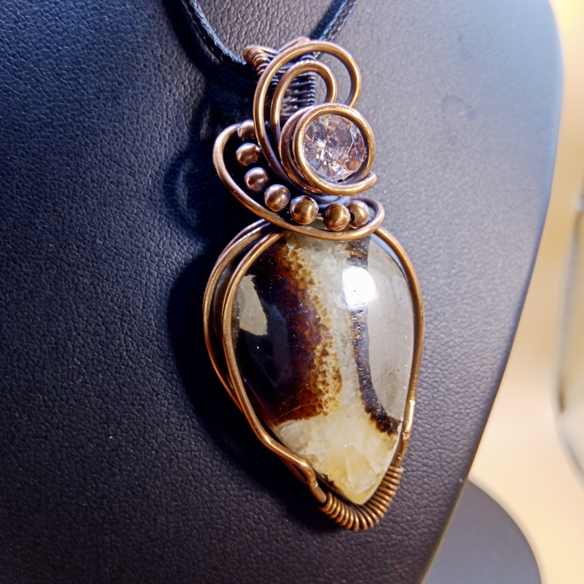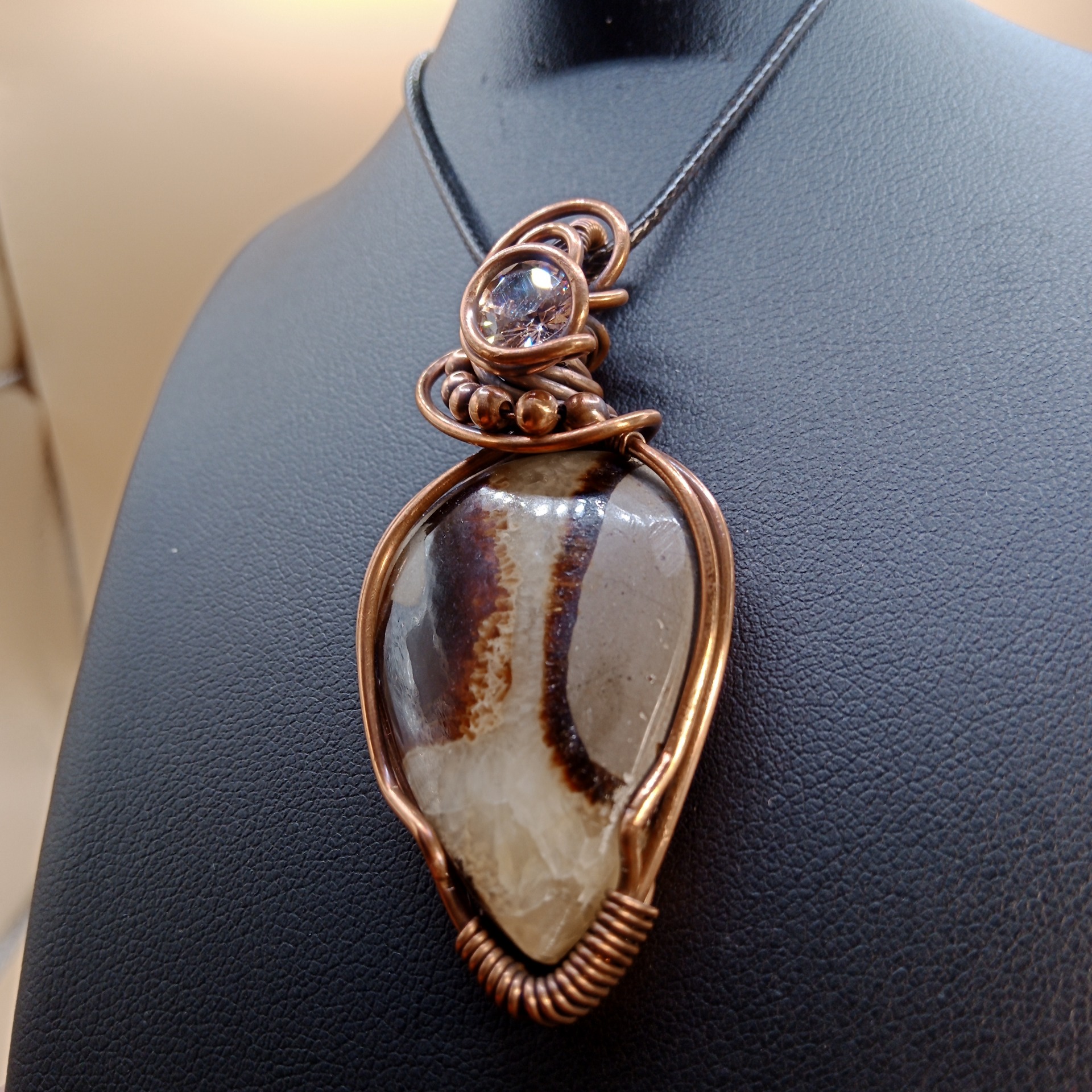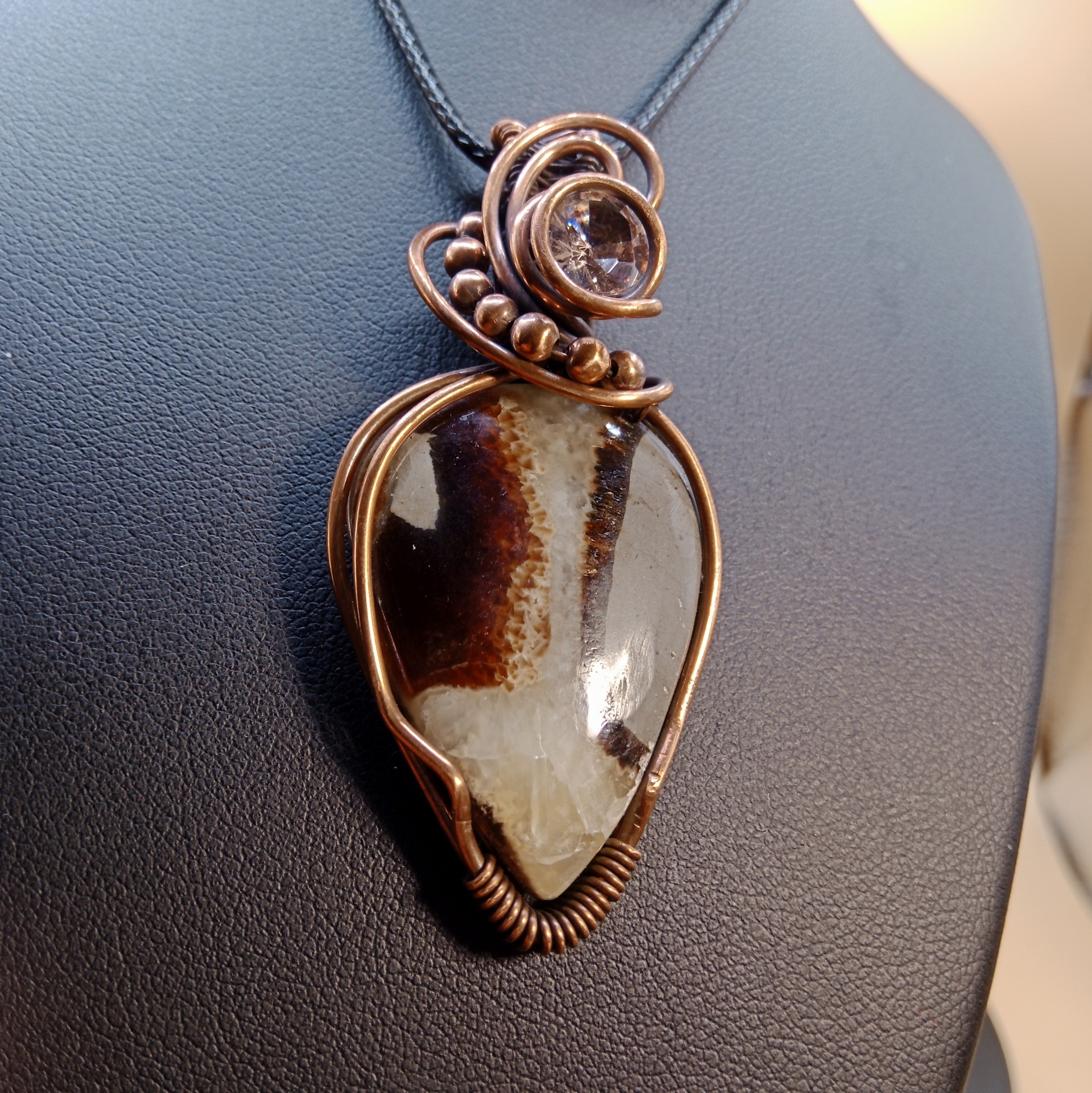 Septárie neboli dračí kámen je hlavním prvkem tohoto šperku.