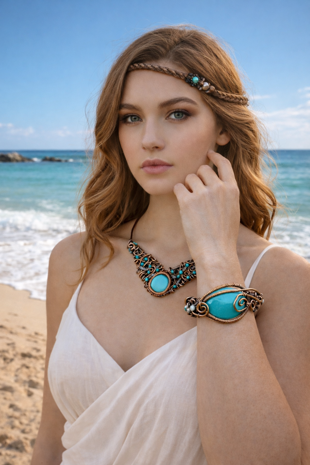Tato výrazná sada vás okamžitě vtáhne do světa mořského klidu a boho elegance.